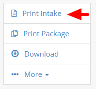 With the intake form open, you'll see a button on the right labelled "Print Intake", click this to open up the PDF version of that form (this doesn't include any attached consent forms).
